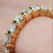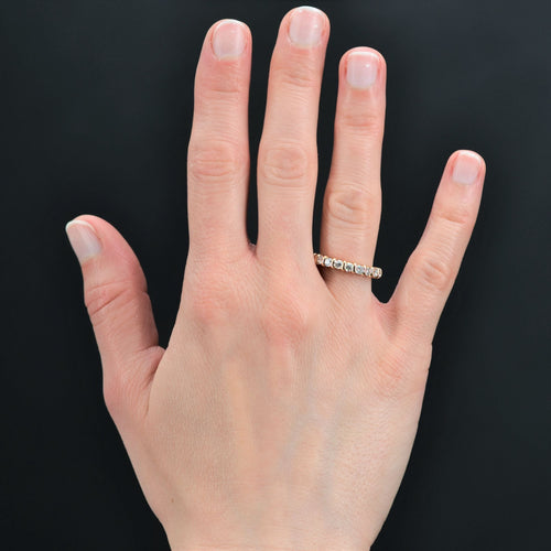 - Halve trouwring, bovenaan versierd met 9 moderne briljant geslepen diamanten, gescheiden door gouden haarspeldjes. De ring heeft 2 krimpkralen die kunnen worden verwijderd als de maat wordt gewijzigd.