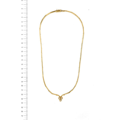 Halfstijve mesh-halsketting van 18 kt geelgoud, gecentreerd met 3 briljant geslepen diamanten van 0,07 ct; totaal 0,21 ct - FG-kleur en VVS-helderheid.