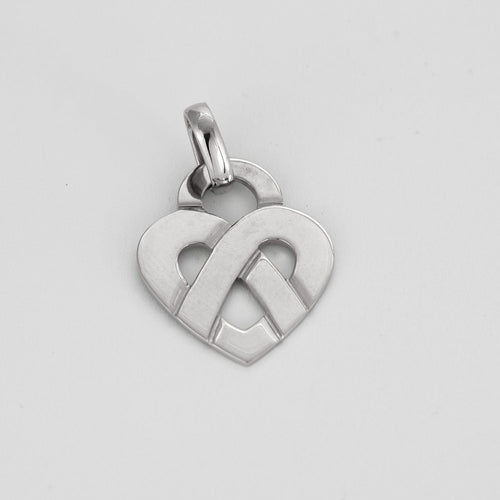 Middelgroot model hanger in 18K (750 duizendste) witgoud met strakke lijnen die een met elkaar verweven hart vormen.