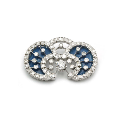 Broche in 750‰ witgoud en 950‰ platina bezet met een oud geslepen diamant van circa 0,50 karaat en 66 oud geslepen diamanten.