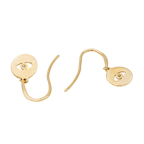 Oorbellen van getest 750 duizendste (18 karaat) geelgoud, bungelend, bezet met 2 briljant geslepen diamanten, circa H-SI, met een totaalgewicht van circa 0,02 ct, (elke diamant weegt 'circa 0,01 ct), lengte: 3,50 cm , breedte: 8,60 cm, gewicht: 1,05 gram, uitstekende staat.