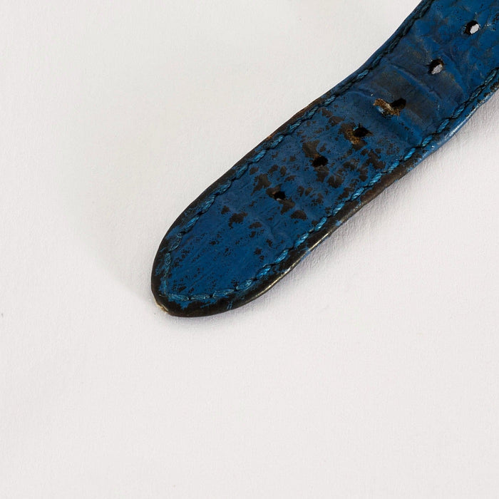 Gesigneerde vergulde gesp. Blauwe armband met haaienleer.