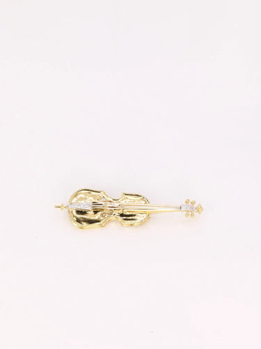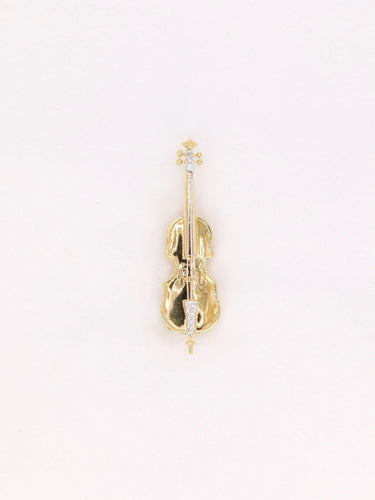 18k (750°/°°) gouden broche met afbeelding van een cello, de kop en het staartstuk zijn bezet met briljant geslepen diamanten. Waarschijnlijk Frans werk uit de jaren 80. Gesigneerd Citi goud, Frans importkeurmerk en adelaarskopkeurmerk voor 18 karaat goud.