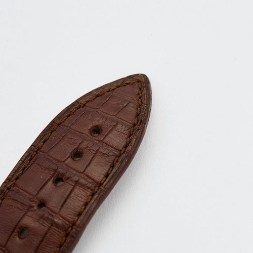 Gesigneerde armband in bruine krokodil, 18-karaats (750/°°°) roze gouden gesp ook gesigneerd.
