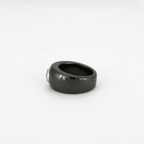 - MAUBOUSSIN - MY DEMON DIAMOND - Zwarte keramische ring versierd met een briljant geslepen diamant van ongeveer 0,08 karaat in een ringzetting van 18K (750 duizendste) witgoud.
