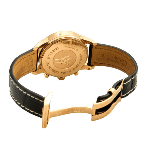 Aangedreven door Breitling's automatische chronograafuurwerk met maand-, dag-, datum-, schrikkeljaar- en maanfasecomplicaties.