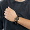 De zwarte alligatorband is voorzien van een vouwsluiting.