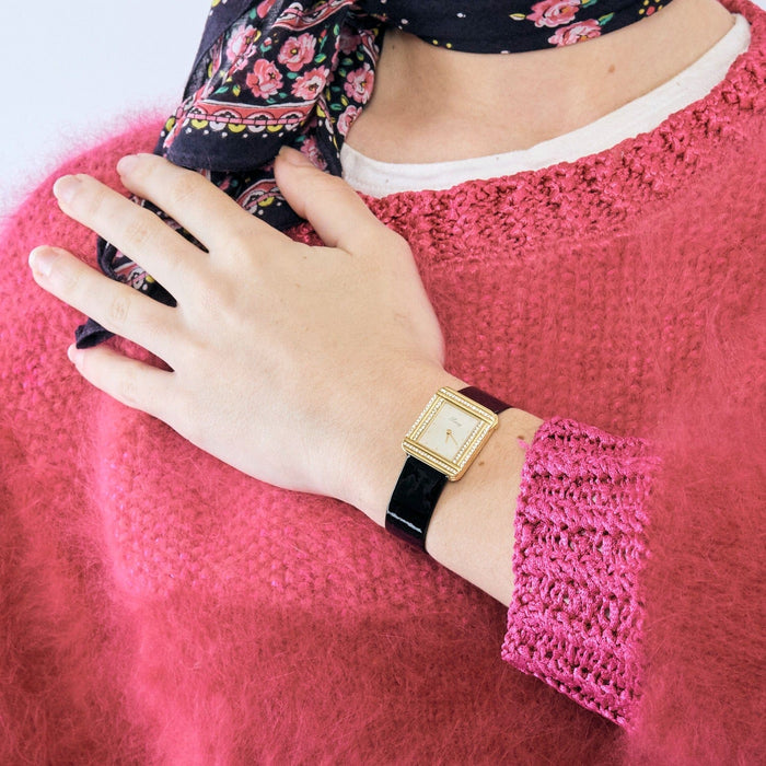 POIRAY - Ma Premèière - Elegant en zeldzaam dameshorloge in 18-karaats geelgoud (750/°°°), kast versierd met twee rijen briljant geslepen diamanten van circa 0,70 karaat (geschatte G/VS), gesigneerde wijzerplaat, vergulde indexen en wijzers, quartz-uurwerk.