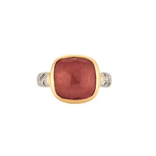 - POMELLATO - SHERAZADE- Belangrijke ring in 18K (750 duizendsten) geel- en witgoud, versierd met een vierkante gefacetteerde kussenvormige toermalijn in een gesloten zetting, geschraagd met briljant geslepen diamanten.