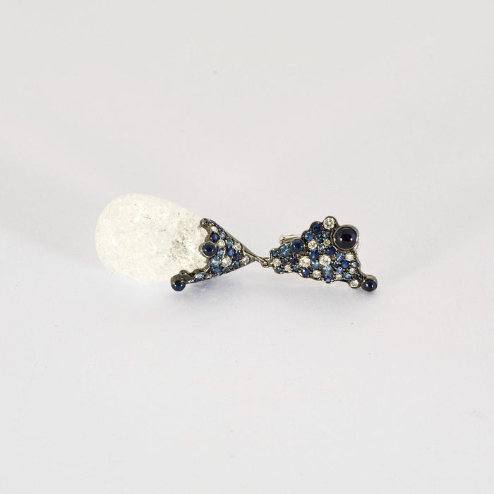 ROBERTO COIN - Oorbellen met hanger van witgoud, saffier, diamant en bergkristal