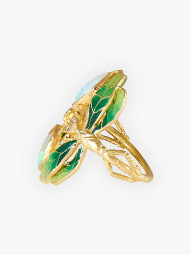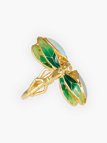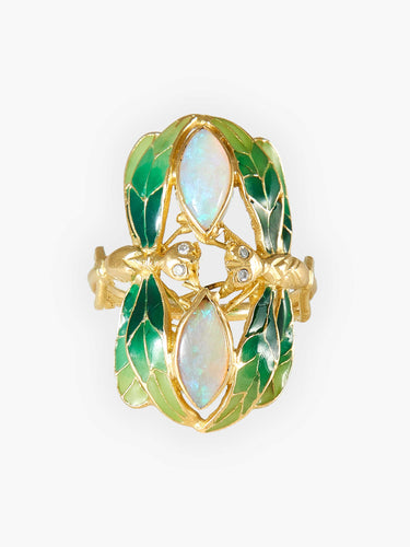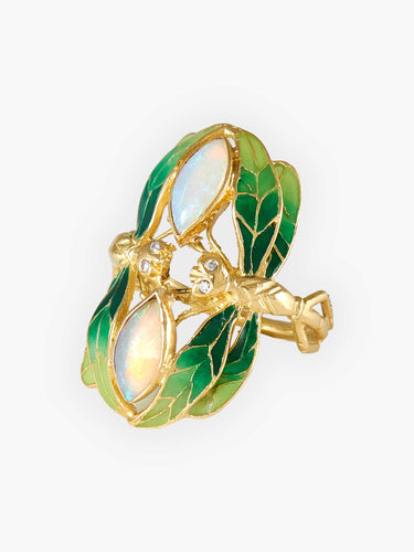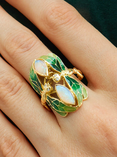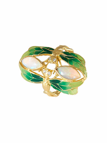 Dragonfly Lacquer Diamond and Opal Ring