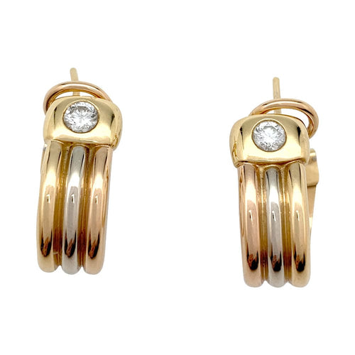 A pair of earrings branded of the House Cartier, "Fogorra" model, in 750/000 gold in three tones, each set with a brilliant-cut diamond each weighing approximately 0.25 carat.