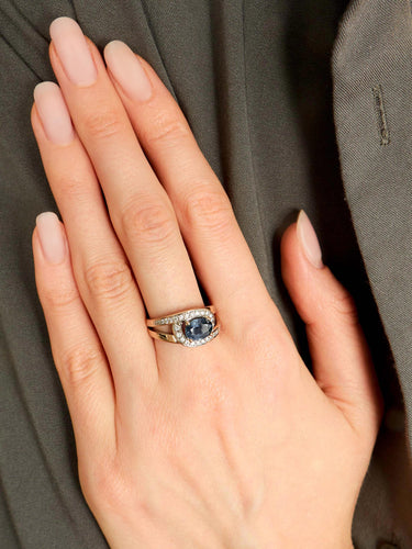 Set in the Center with a Natural Oval Sapphire of Beautiful Color.