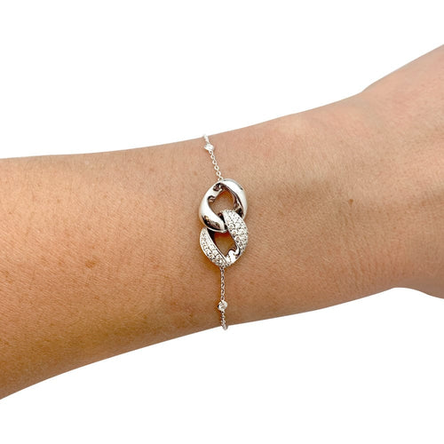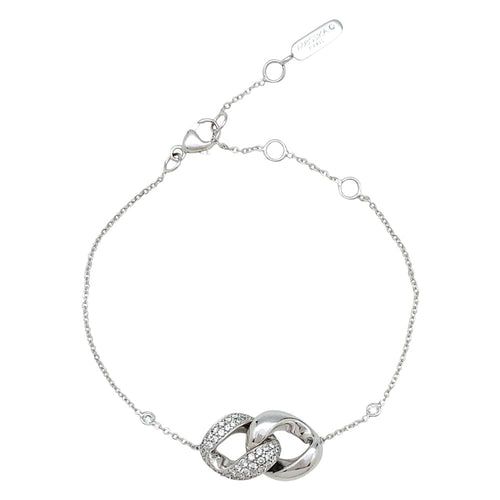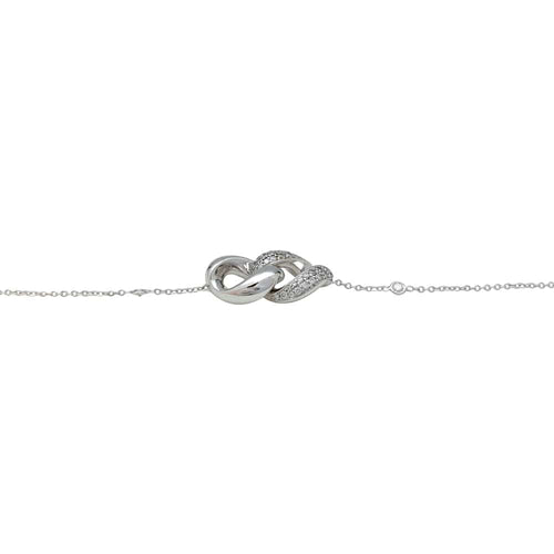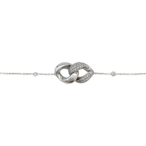 A bracelet branded from Maison Messika, "Infinity", in 750/000 white gold, centered with an eight, one of the rings is paved with diamonds. The chain is enhanced with two diamonds.