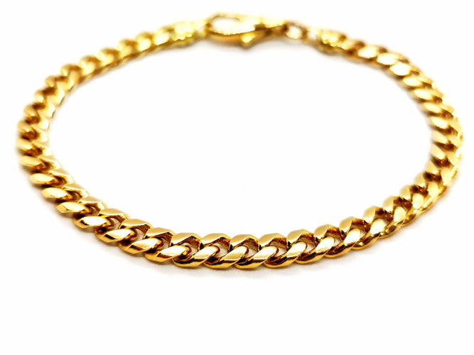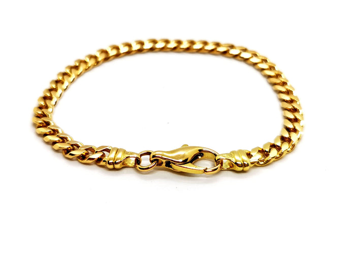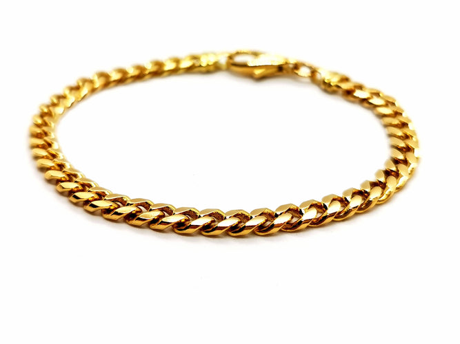 750 thousandths (18 carat) yellow gold bracelet, curb link, length: 19 cm, width: 0.51 cm, thickness: 0.21 cm, total weight: 19.54 g, Owl hallmark, excellent condition.