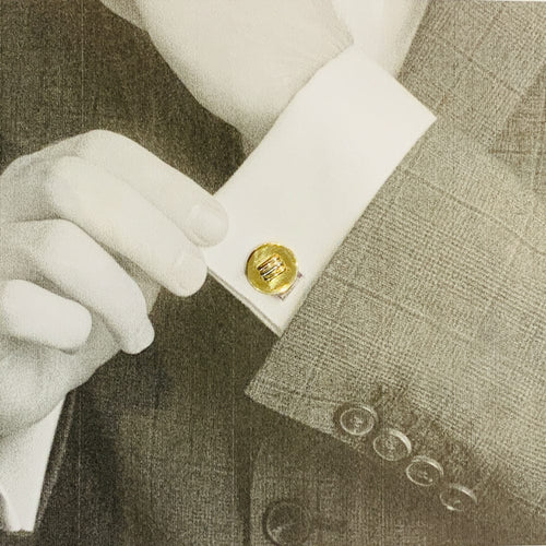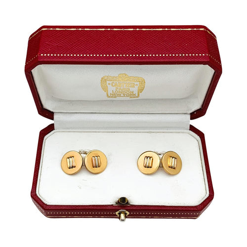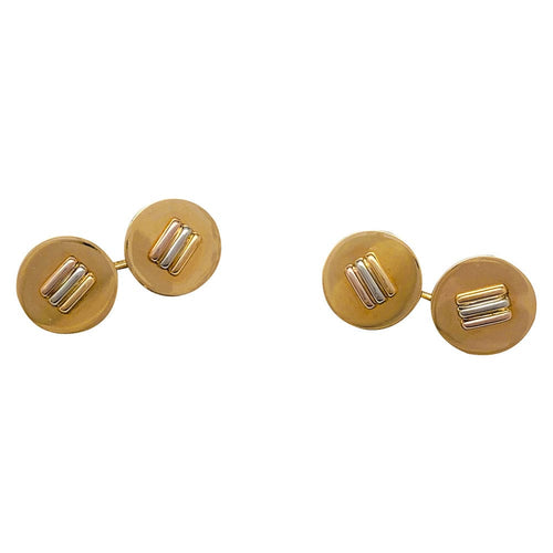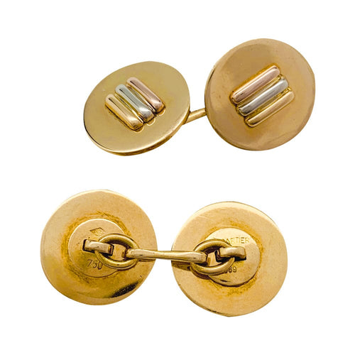 A pair of cufflinks branded of the House Cartier, "Trinity", featuring discs in 750/000 yellow gold enhanced with lines in 750/000 yellow, pink and white gold.
