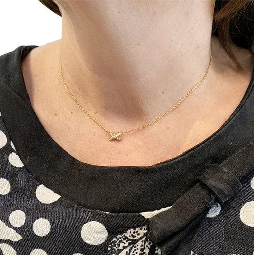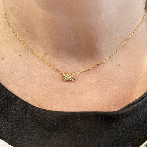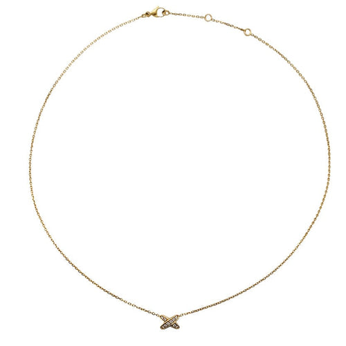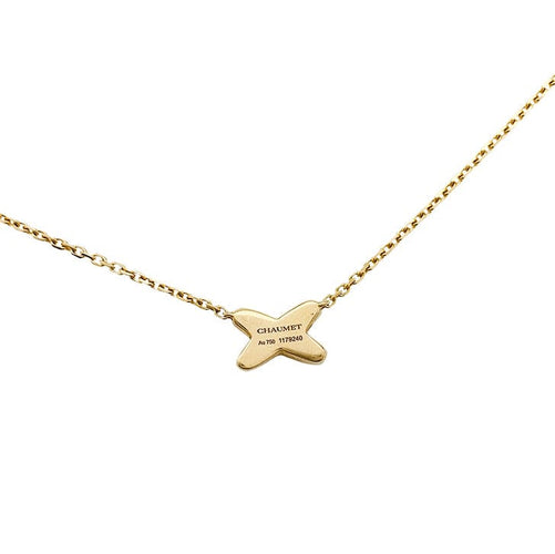 A necklace Chaumet in 750/000 yellow gold, collection "Liens", adorned with a cross motif set with 10 brilliant-cut diamonds (0.07ct) on a diamond cable chain.