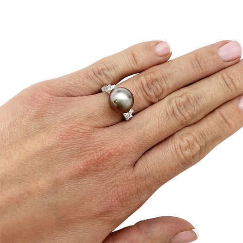 Ring Chaumet, "Clarisse", white gold, Tahitian pearl.