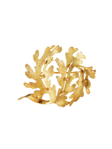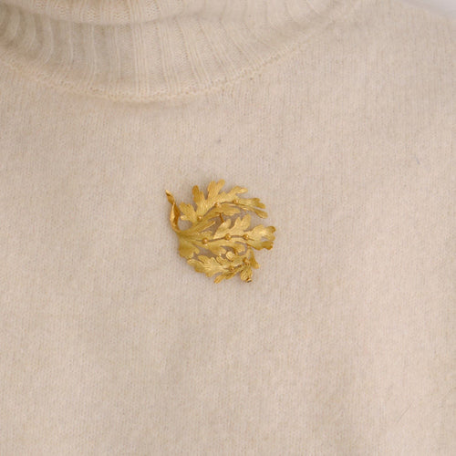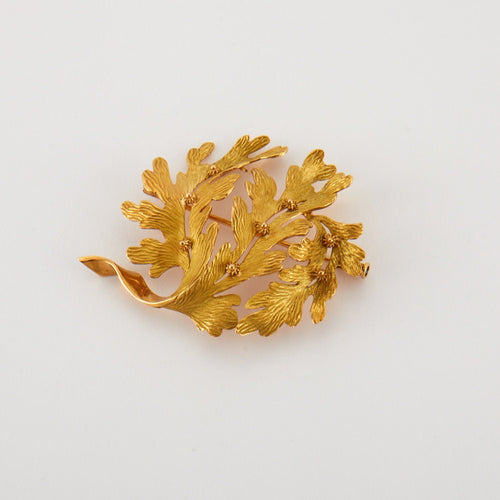 Old brooch in 750/1000 yellow gold and pink gold in Art Nouveau style. Striped yellow gold leaf motif garnished with pink gold berries. Closing by pump system.