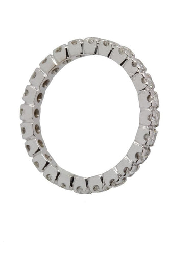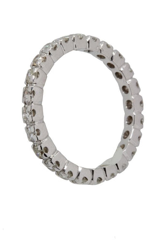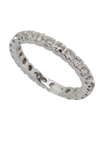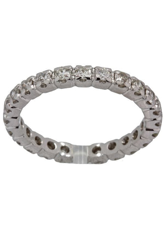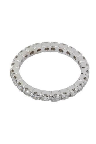 In perfect condition, this wedding ring is set all around with modern cut diamonds.
