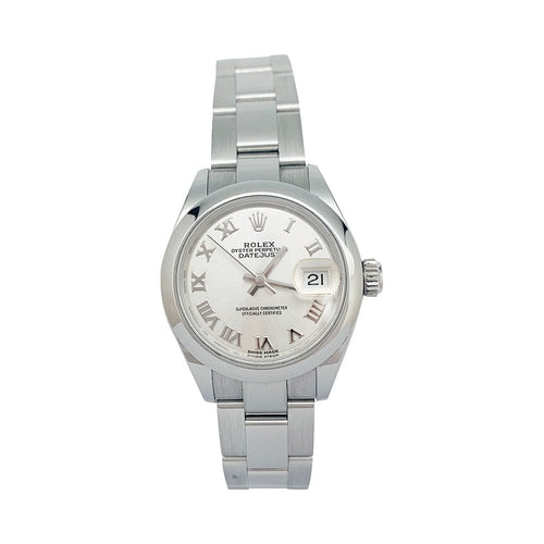 A watch branded from the House of Rolex, 'Oyster Perpetual Datejust' model in steel, steel oyster bracelet, folding clasp. Dial silveré, Roman indexes, date at 3 o'clock.