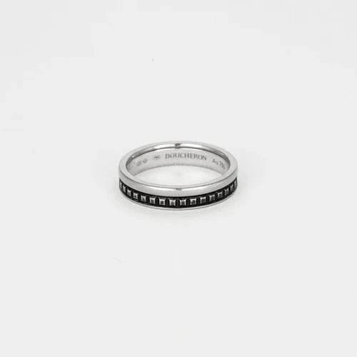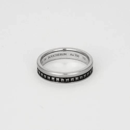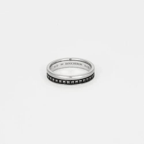 Boucheron - Quatre - Fine wedding ring in 18 carat white gold (750/°°°) rhodium-plated with “clous de paris” decoration.