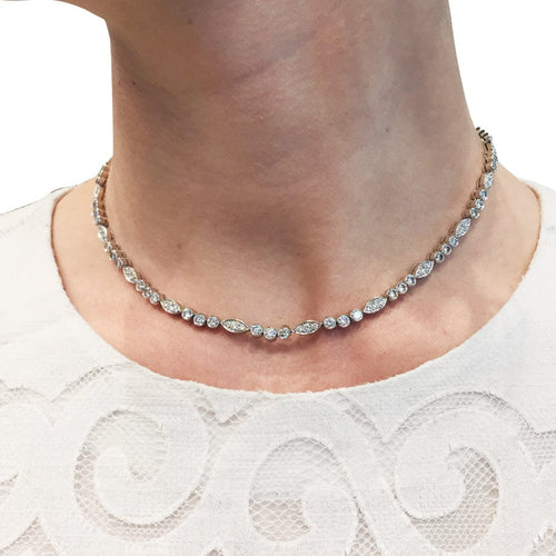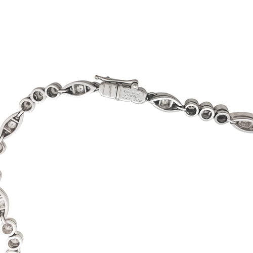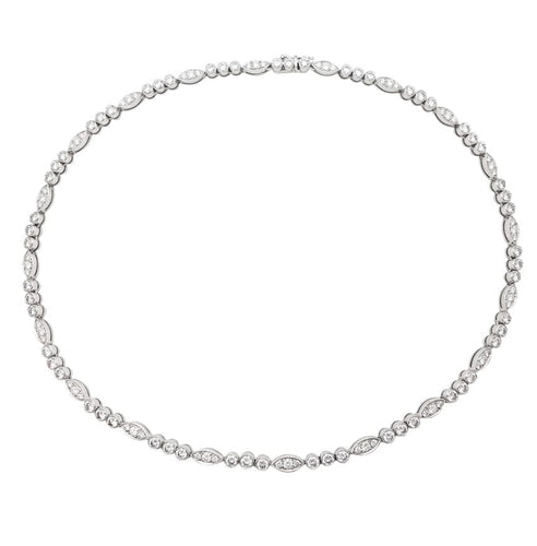 A choker necklace branded of the House Cartier model "Dentelle" in platinum 950/000 formed of round and shuttle patterns set with one hundred and twenty brilliant-cut diamonds in total. The ratchet clasp is in 750/000 white gold.