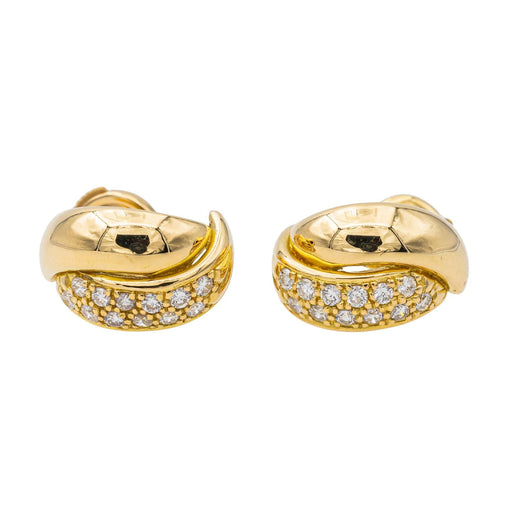 Creoles in 750 thousandths (18 carat) yellow gold tested, set with 24 brilliant-cut diamonds, approximately H-VS, with a total weight of approximately 0.24 ct (each diamond weighing approximately 0.01 ct), Alpa clasp, diameter: 1.45 cm, width: 0.90 cm, total weight: 6.21 g, excellent condition