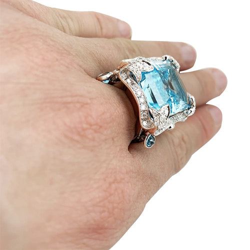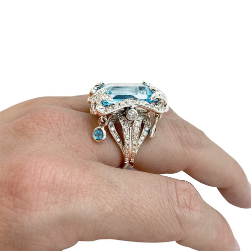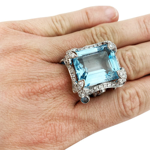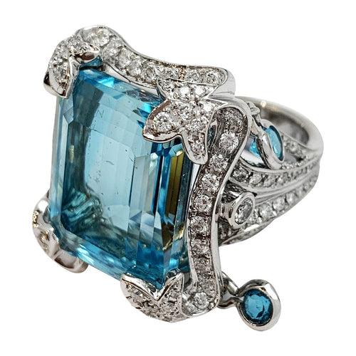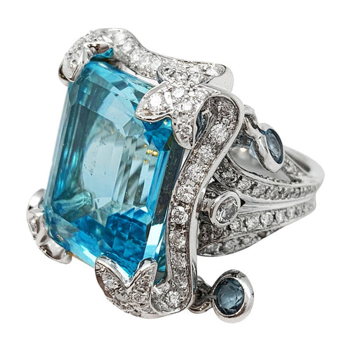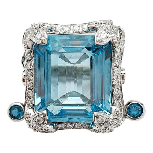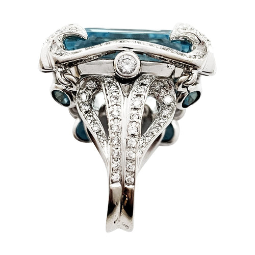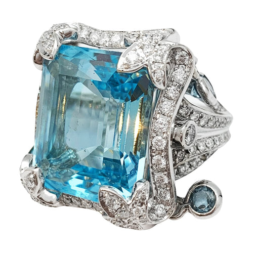 A ring branded of the House Edouard Nahum, "Sterina" model in 750/000 white gold set with 150 Diamonds for approximately 1.97 Carats and 1 emerald-cut topaz of approximately 27 carats.