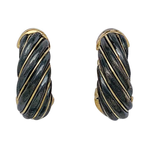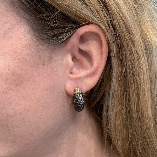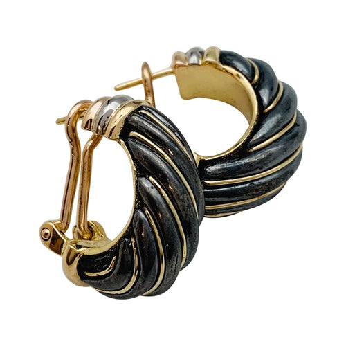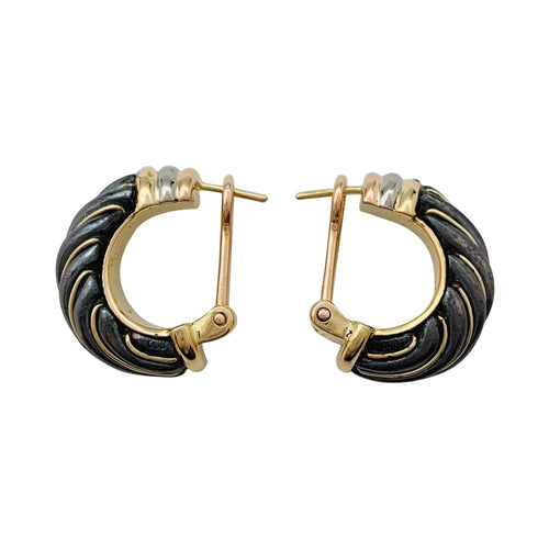A pair of earrings branded of the House Cartier, hoop earrings, in yellow, pink and white gold 750/000, enhanced with an alloy based onsilver 800/000, called silverium by Cartier, which has the characteristic of being black.