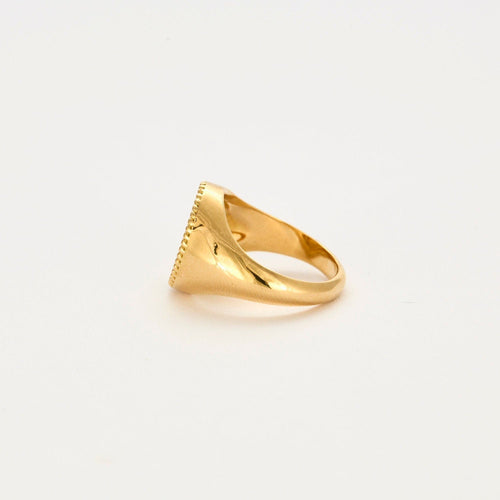 Very pretty signet ring in 18K yellow gold, paved with 43 brilliant-cut FG VS diamonds for a total of 0.28 carats surrounded by a twisted wire for a retro and original look.