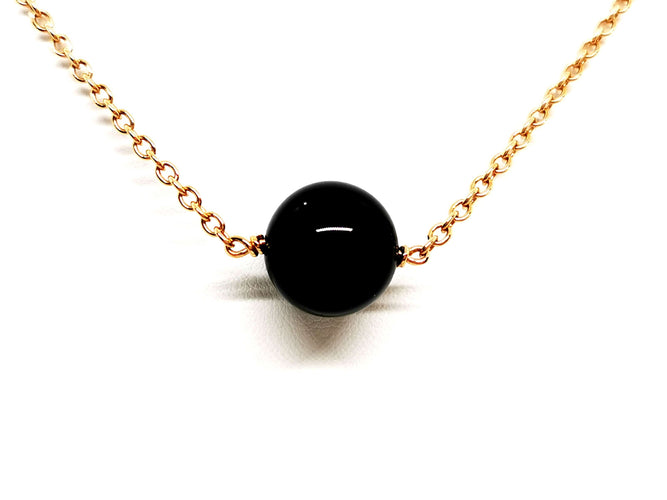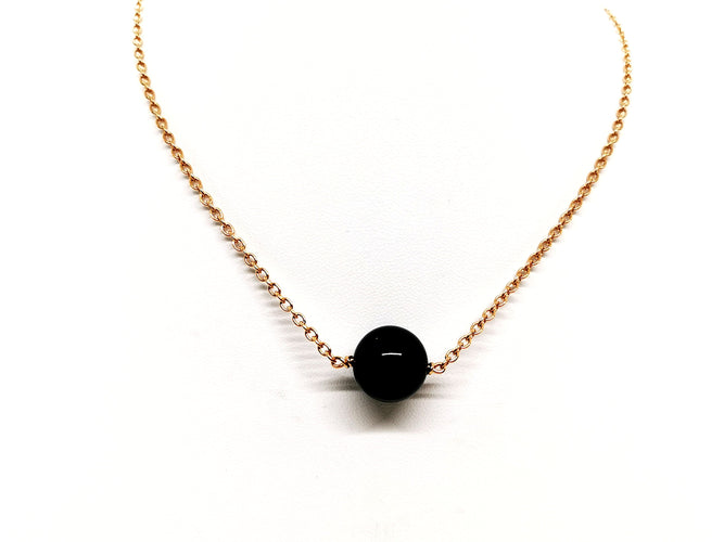 Pendant and chain necklace, in 750 thousandths (18 carat) pink gold, and onyx ball.