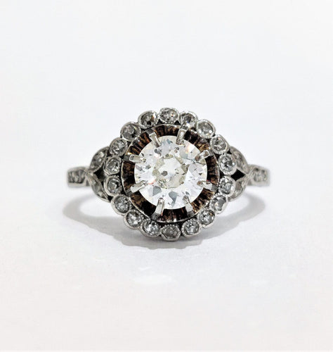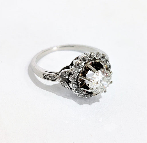 Ring Daisy from the 1930s set with an old cut diamond measuring approximately 0.60ct surrounded by 18 diamonds in a beaded bezel setting for a total of approximately 0.20ct.
