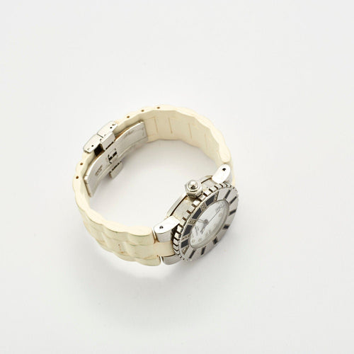 CHAUMET – Class One – Ladies' watch in steel, quartz movement, the bezel adorned with black enamel and diamonds. White dial with Roman numerals and diamond indexes.