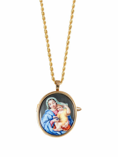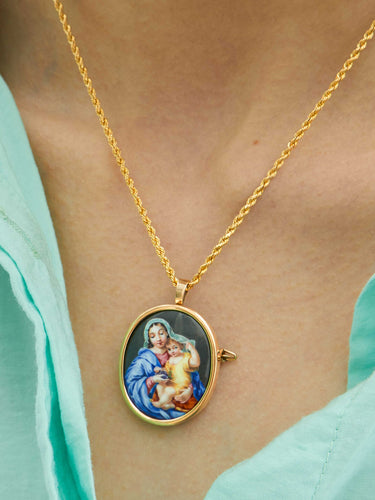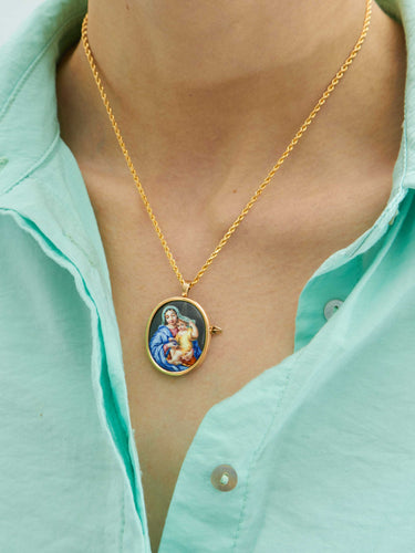Yellow gold and enamel pendant representing the Virgin and Child.