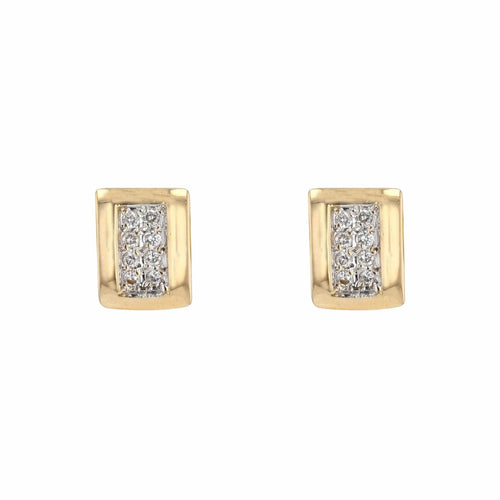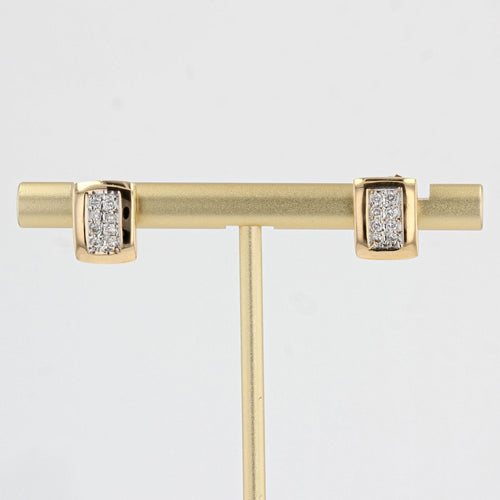 - These gold earrings second-hand are rectangular in shape, slightly domed with in the central part, 2x8 modern brilliant-cut diamonds. The clasp is a nail with Alpa disc.