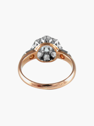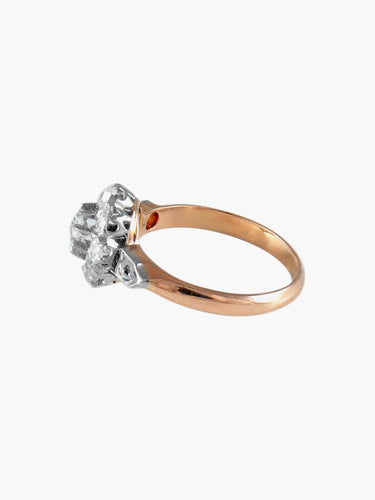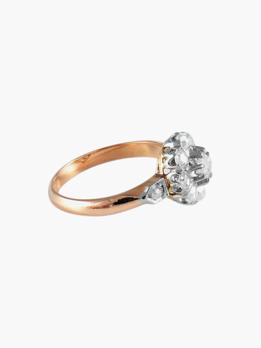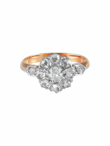 Ring model Daisy in platinum and 18K rose gold adorned with a central diamond of approximately 0.25ct surrounded by 10 diamonds.