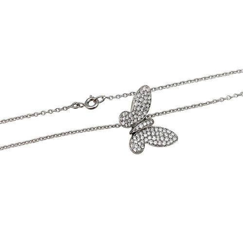Butterfly pendant in white gold, diamonds, cable chain.