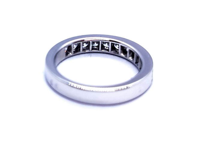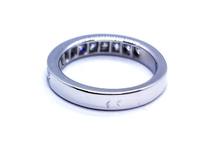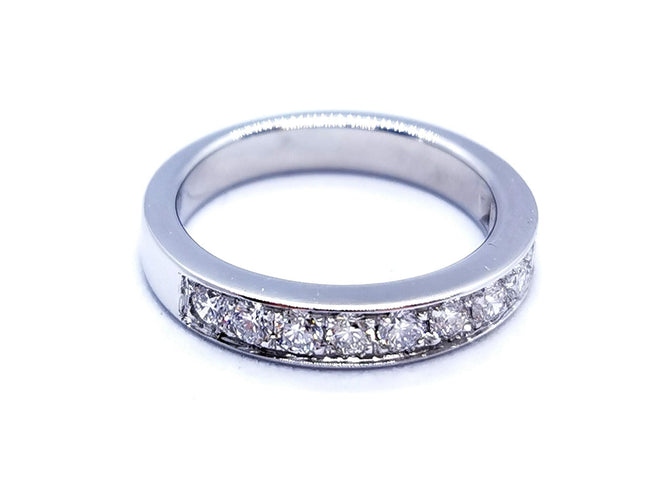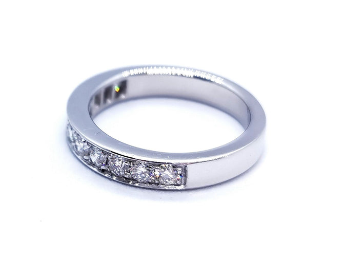Half wedding ring in 750 thousandths (18 carat) white gold, set with 11 F-VS brilliant-cut diamonds for a total of 0.78 ct, Ring size: 53, width: 0.36 cm, total weight: 5 g, eagle's head hallmark, new condition