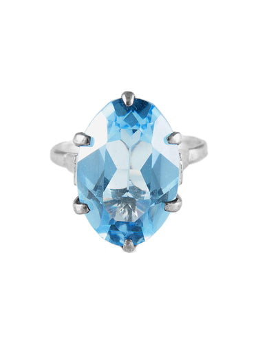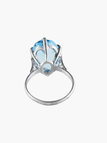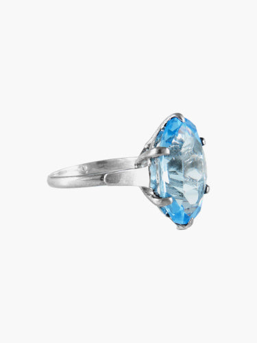 Old ring in silver solid 800/1000 set on 6 claws with a light blue shuttle-cut synthetic spinel, typical of the period Art Deco.
