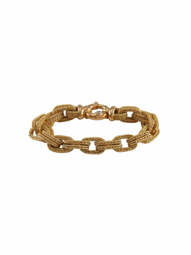 Double ring bracelet in braided mesh, in 18-carat 750‰ yellow gold, with a clasp set with a diamond.