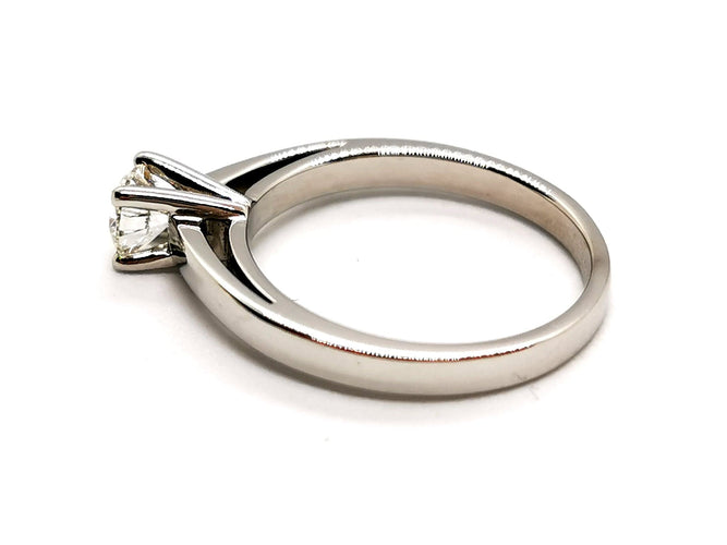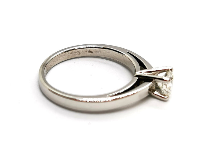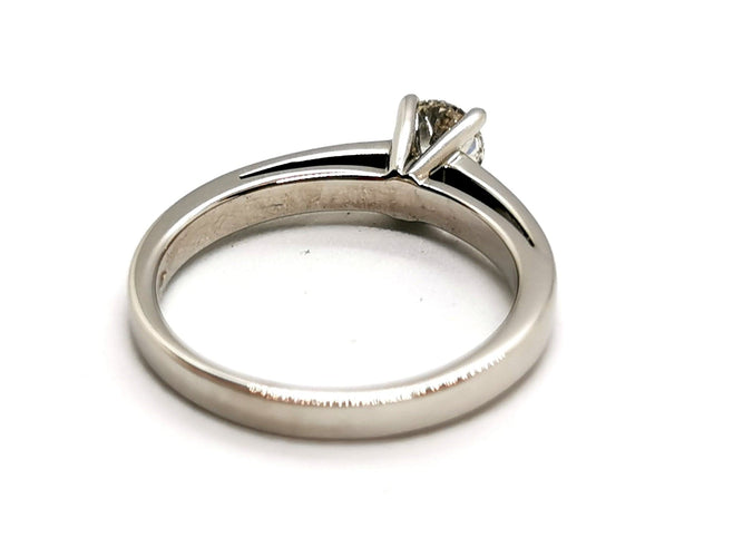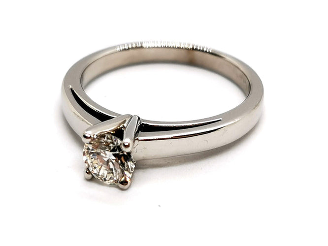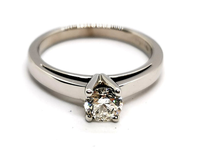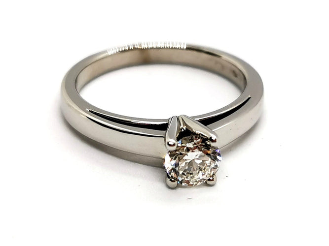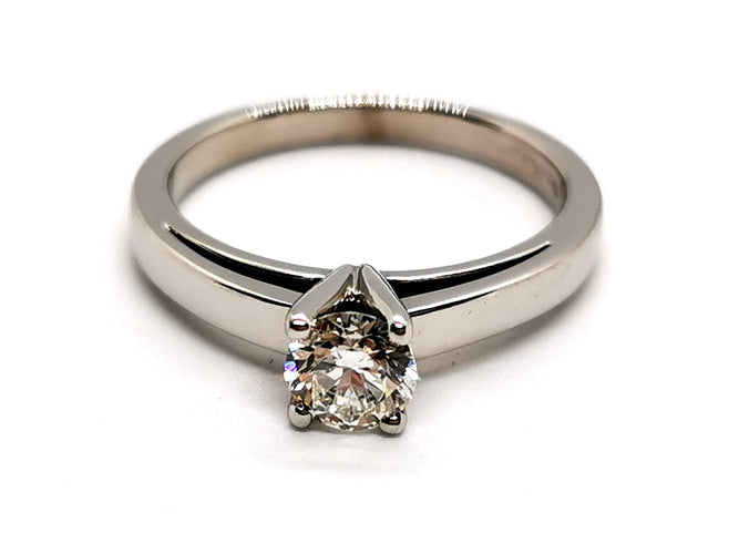 Solitaire in 750 thousandths (18 carat) white gold, set with 4 claws.