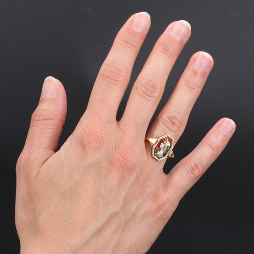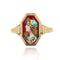 - The top of this old ring represents an octagonal Limoges enamel with the profile of a woman wearing a hairstyle, in a closed setting, supported on either side of a falling staircase.