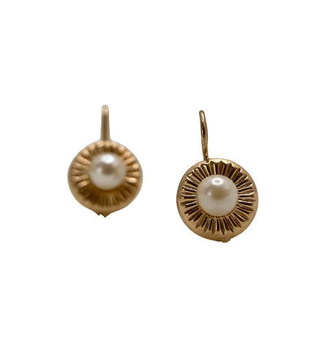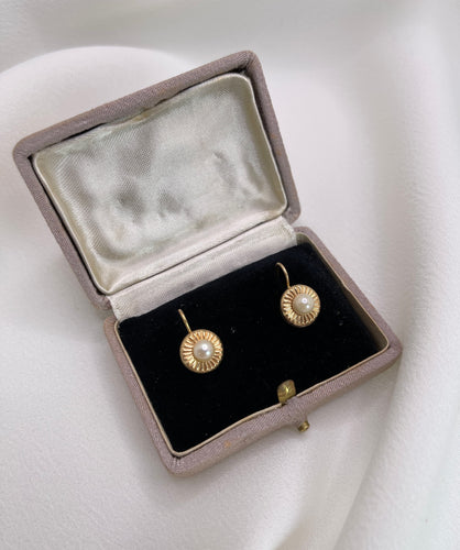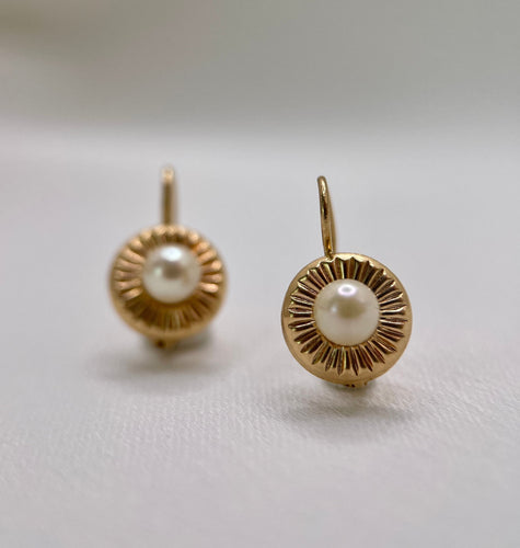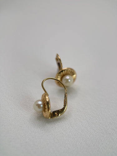 Vintage Sleepers in Godronné Gold and Cultured Pearls