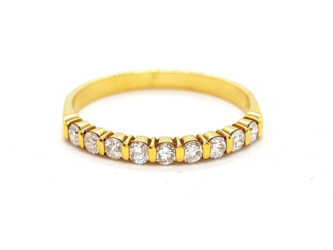 Half wedding ring in 750 thousandths (18 carat) yellow gold, set with 9 GH SI brilliant-cut diamonds for approximately 0.27 ct in total, Ring size: 55, width on top: 0.22 cm, total weight: 2.20 g, new condition, eagle's head hallmark