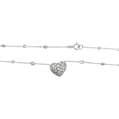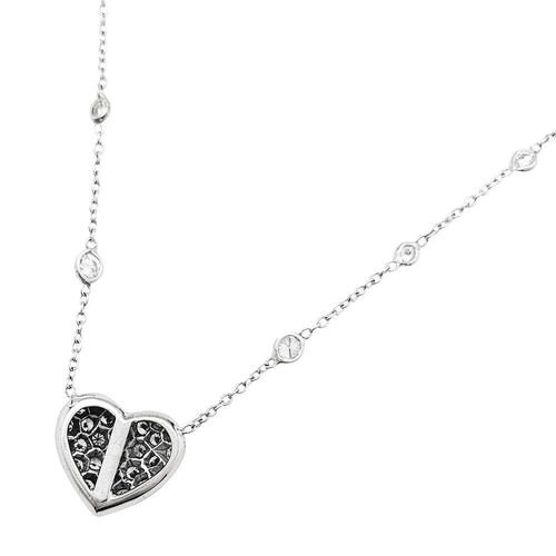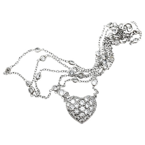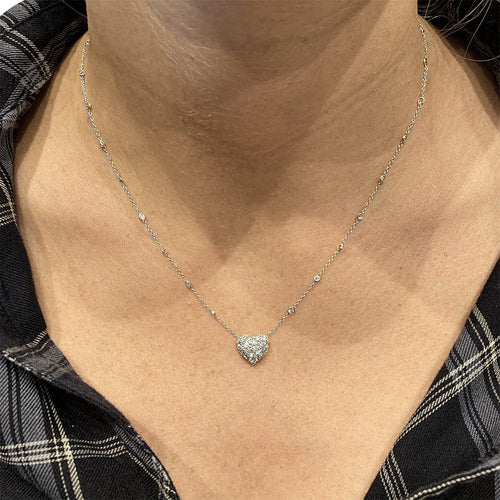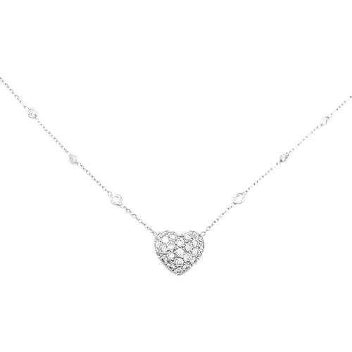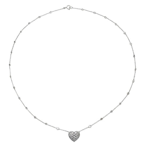 A necklace in platinum 950/000 composed of a round convict link chain punctuated with brilliant-cut diamonds bezel-set centered with a heart paved with brilliant-cut diamonds.