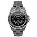 Watch Chanel model J12 black ceramic, serial number LBC33986, black dial with diamond indexes, self-winding mechanical movement, 38 mm case, sapphire crystal, ceramic bracelet with butterfly buckle (wrist size 18 cm, bracelet width 0.20 cm), total weight: 133.77 g, year 2022, complete overhaul and 1 year warranty, excellent condition