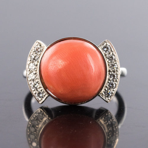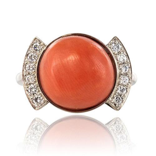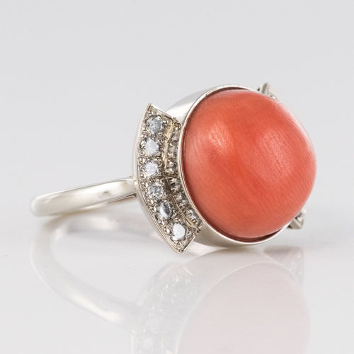 Our opinion : A ring inspired by the 1930s: the coral is beautifully highlighted by the diamonds, a luminous ring.
