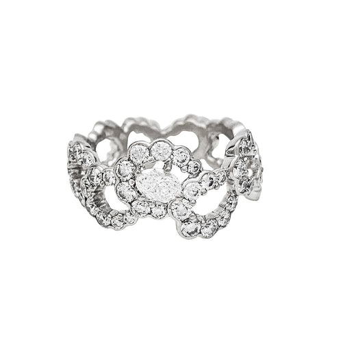 A ribbon ring branded from the House of Dior, "Archi" model, in 750/000 white gold, entirely set with diamonds, centered with a larger oval diamond.