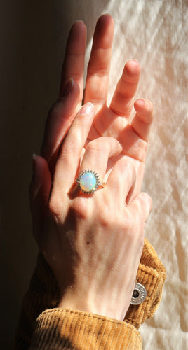 size of the opal: 12.96 x 11.24 x 5.80 mm or approximately 4.80 carats